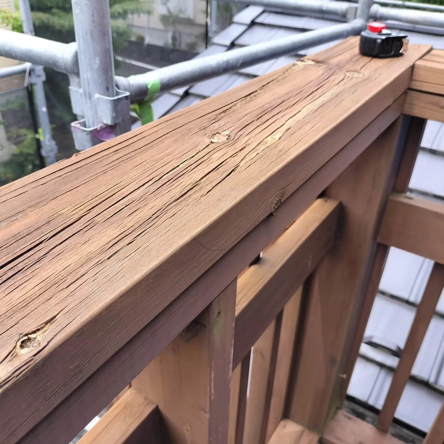 先日外壁塗装工事が完了した八王子市N様邸は、スウェーデンハウスということもあり、木材の使用が多いためキシラデコールの出番もかなりありました。色はパリサンダで、エントランス及びベランダを塗装…